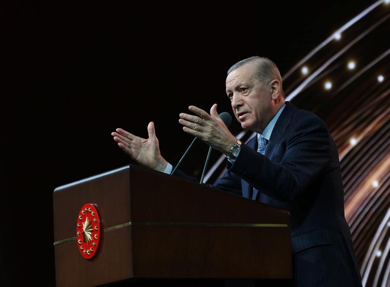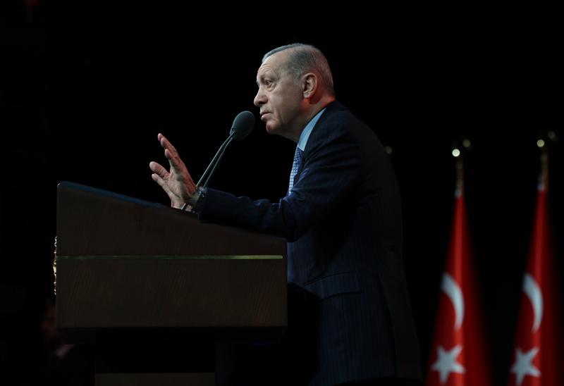 Burada konuşan Erdoğan, Türkiye'nin ve gönül coğrafyasının farklı köşelerinde sanatlarını icra eden, kültür ve medeniyet mirasını yarınlara taşıyan tüm sanatçılara, ustalara teşekkür etti.