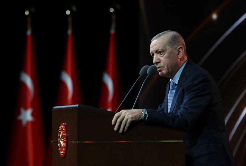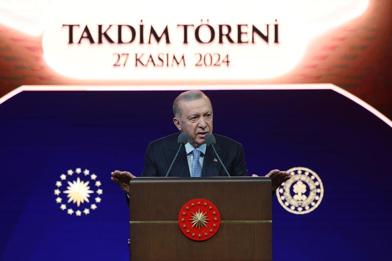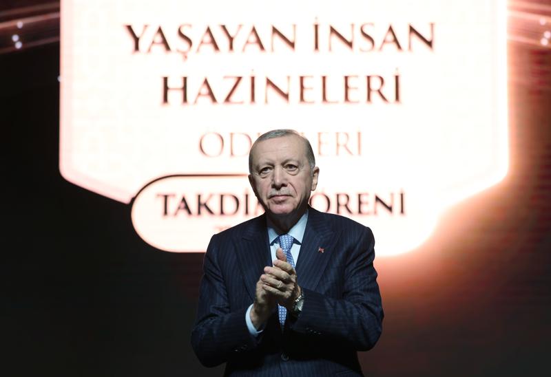 Erdoğan, Beştepe Millet Kongre ve Kültür Merkezi'nde düzenlenen "Kültür ve Turizm Bakanlığı Özel Ödülleri ve Yaşayan İnsan Hazineleri Ödül Töreni"ne katıldı.