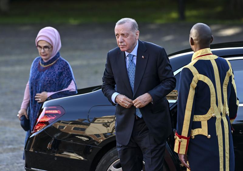 Cumhurbaşkanı Erdoğan'a, Kraliyet Sarayı'ndaki yemekte, eşi Emine Erdoğan eşlik etti.