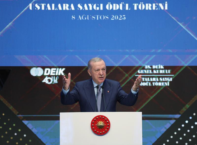Önceki günlerde Türkiye ekonomisine dair çok önemli verilerin açıklandığını dile getiren Erdoğan, "Dış ticarette yine rekorlara imza attık. Hatırlarsanız 28 Mart'ta 2 milyar 64 milyon dolar ile günlük mal ihracat rekoru kırmıştık. 2025 yılı temmuz ayında ise 25 milyar dolar ile Cumhuriyet tarihimizin en yüksek aylık mal ihracatını gerçekleştirdik. Dış ticaret açığı son 9 ayın en düşük seviyesine indi. 2002'de yılda 36 milyar dolar ihracat yapan Türkiye'yi böyle aldık, sadece bir ayda 25 milyar dolar ihracat yapan bir ülke haline getirdik. Ocak-temmuz ihracatına bakıldığında da yüzde 5.2'lik artışla 7 ayda 156.4 milyar dolara ulaştık." diye konuştu.