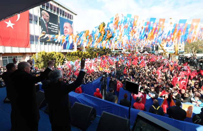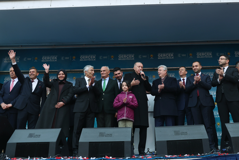 Alana kurulan ekrandan yatırımların izletilmesinin ardından Erdoğan, bu millete efendi olmaya değil hizmetkar olmaya geldiklerini söyledi. Erdoğan, "İnşallah 31 Mart'tan sonra bunlara, yerel yönetimlerle işbirliği halinde çok daha fazlasını Cumhurbaşkanı kardeşiniz, ekibiyle ilave edecektir. İl ve ilçe belediye başkan adaylarımızı ben sizlere emanet ediyorum. 31 Mart'a kadar gece gündüz çalışıyoruz değil mi?" ifadelerini kullandı.