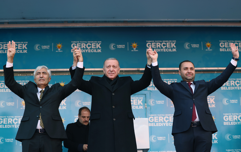 Mitingin sonunda Erdoğan, AK Parti'nin Çankırı Belediye Başkan adayı Hüseyin Filiz ile ilçe belediye başkan adaylarını sahneye çağırıp, vatandaşları selamladı.