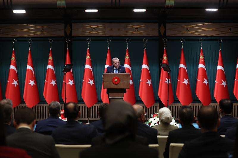 Cumhurbaşkanlığı Külliyesi'ndeki Kabine Toplantısı'nın ardından millete seslenen Erdoğan, dış politikadan sanayiye, ekonomiden güvenliğe birçok konuyu mütalaa ettikleri Kabine Toplantısı'nda aldıkları kararların ülke, millet ve tüm insanlık için hayırlı olmasını diledi.