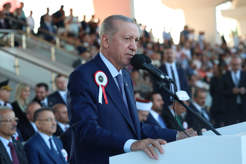 Erdoğan, Polis Akademisi'nde düzenlenen "Polis Akademisi Mezuniyet Töreni"nde yaptığı konuşmada, Türkiye'nin gerek stratejik coğrafi konumu gerekse iddiaları ve savunduğu değerler itibarıyla asimetrik tehditlerle yüzleşen bir ülke olduğunu söyledi.