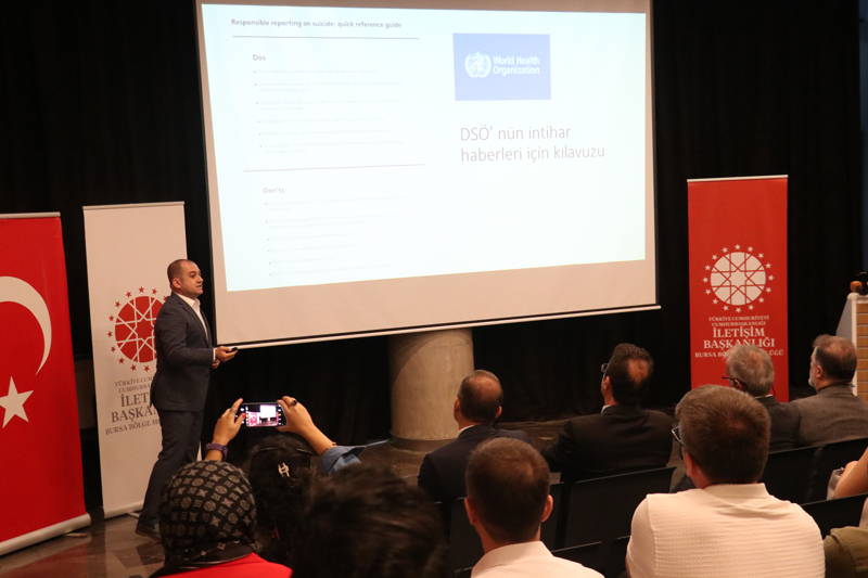 İl Sağlık Müdürü Dr. Orkun Yıldırım'ın selamlama konuşması yaptığı, Gemlik Devlet Hastanesinde görevli Psikiyatri Uzmanı Dr. Mustafa Akan da "Medyada Yer Alan İntihar ve Bağımlılık Haberlerinin Toplum Ruh Sağlığına Etkileri" konulu sunumu gerçekleştirdiği etkinlik, toplu fotoğraf çektirilmesiyle sona erdi.