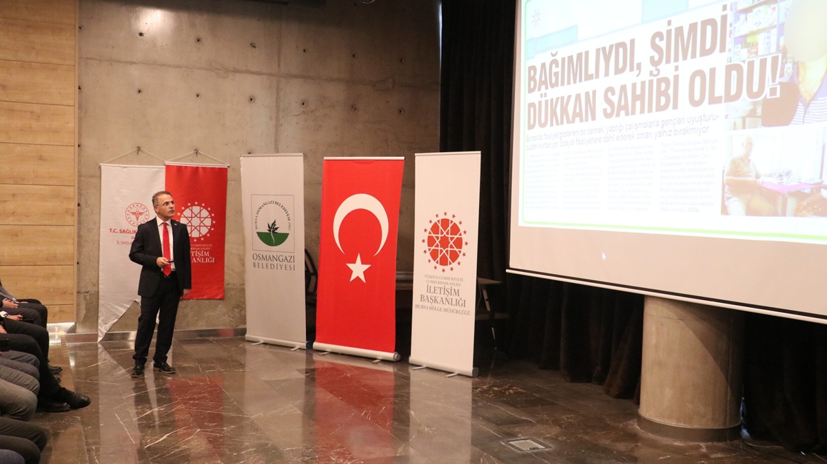 İletişim Başkanlığı Bursa Bölge Müdürü Ali Fuad Gölbaşı, programda yaptığı "Doğru Habercilik ve Medya Etiği Bağlamında Bağımlılık ve İntihar Haberleri" konulu sunumunda bağımlılık ve intihar olgusuyla haber dili arasındaki ilişkinin incelenmesinin hem dinamiklerin anlaşılması hem de önleyici tedbir bakımından önemli olduğunu söyledi.