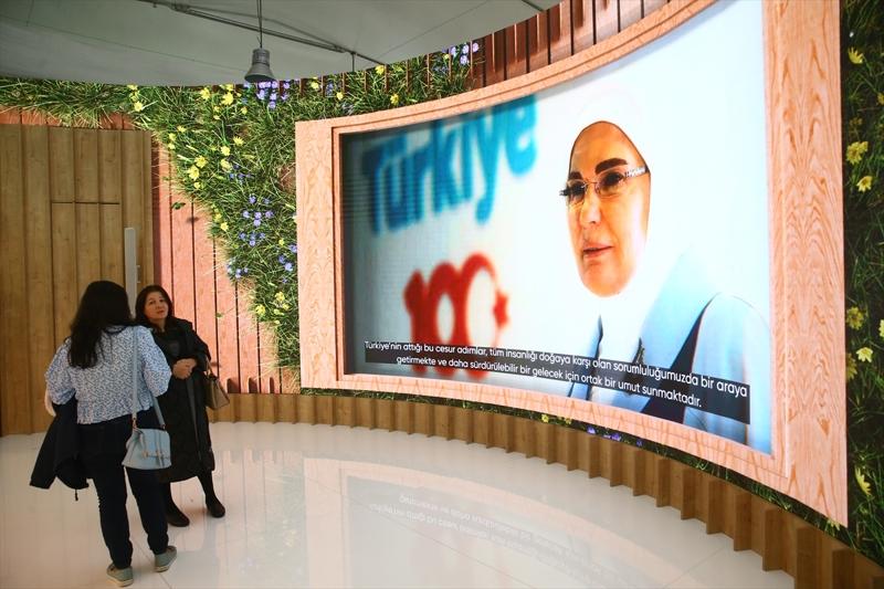 Türkiye'nin çevre ve iklim değişikliği konusundaki çalışmalarının 3 boyutlu görsellerle, video, infografik ve kısa filmlerle gösterildiği, tasarımı ve görselliği ile dikkati çeken standa ziyaretçiler büyük ilgi gösteriyor.