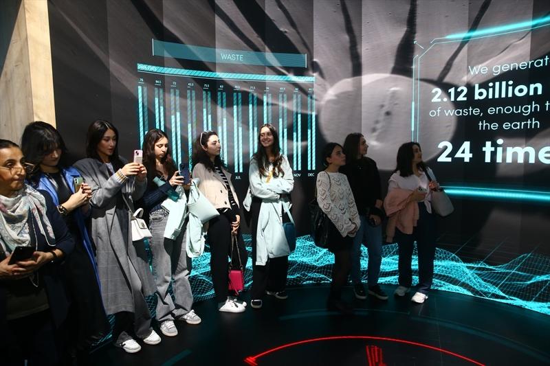 Cumhurbaşkanlığı İletişim Başkanlığının COP29'un Yeşil Bölge'sinde "Sıfır Atık" ana temasıyla kurulan Türkiye pavilyonunda ziyaretçilere, Cumhurbaşkanı Recep Tayyip Erdoğan'ın eşi, BM Sıfır Atık Danışma Kurulu Başkanı Emine Erdoğan'ın girişimleriyle başlatılan Sıfır Atık Projesi anlatılıyor.
