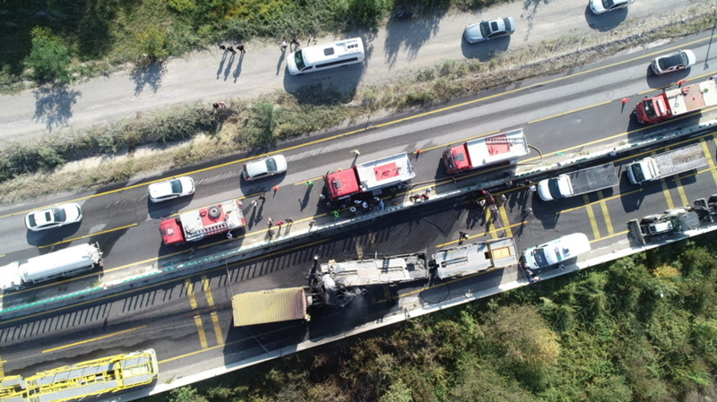 Kaza sonucu tırlardan birinde çıkan yangında sürücü hayatını kaybetti, araçlardaki 7 kişi yaralandı.