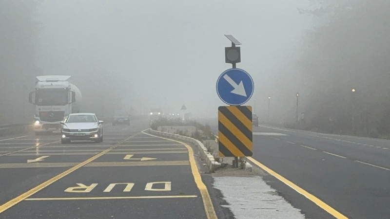 Taşaltı, Karanlıkdere, Elmalık ve Bakacak mevkilerinde sis, görüş mesafesini düşürdü.