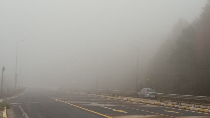 Taşaltı, Karanlıkdere, Elmalık ve Bakacak mevkilerinde sis, görüş mesafesini düşürdü.