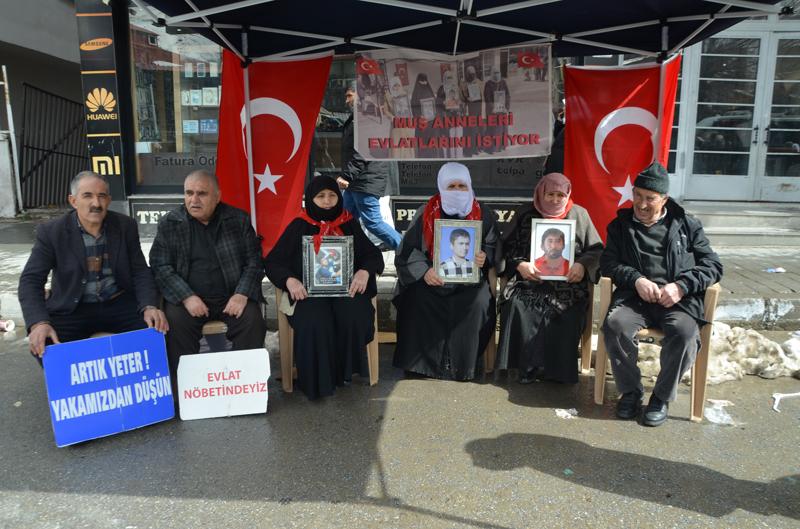 "Anneler direniyor", "Evlat nöbetindeyiz" ve "Artık yeter, yakamızdan düşün" yazılı pankartlar açan anne ve babalar, fotoğraflarını taşıdıkları evlatlarına teslim olmaları çağrısında bulundu.