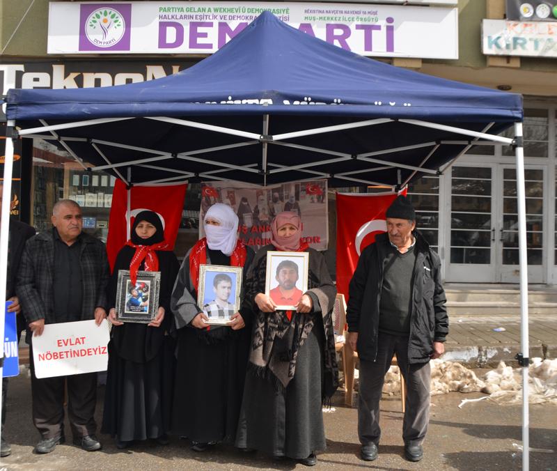Muş'ta çocukları terör örgütü PKK tarafından kaçırılan aileler, DEM Parti İl Başkanlığı binası önündeki eylemlerini sürdürüyor.