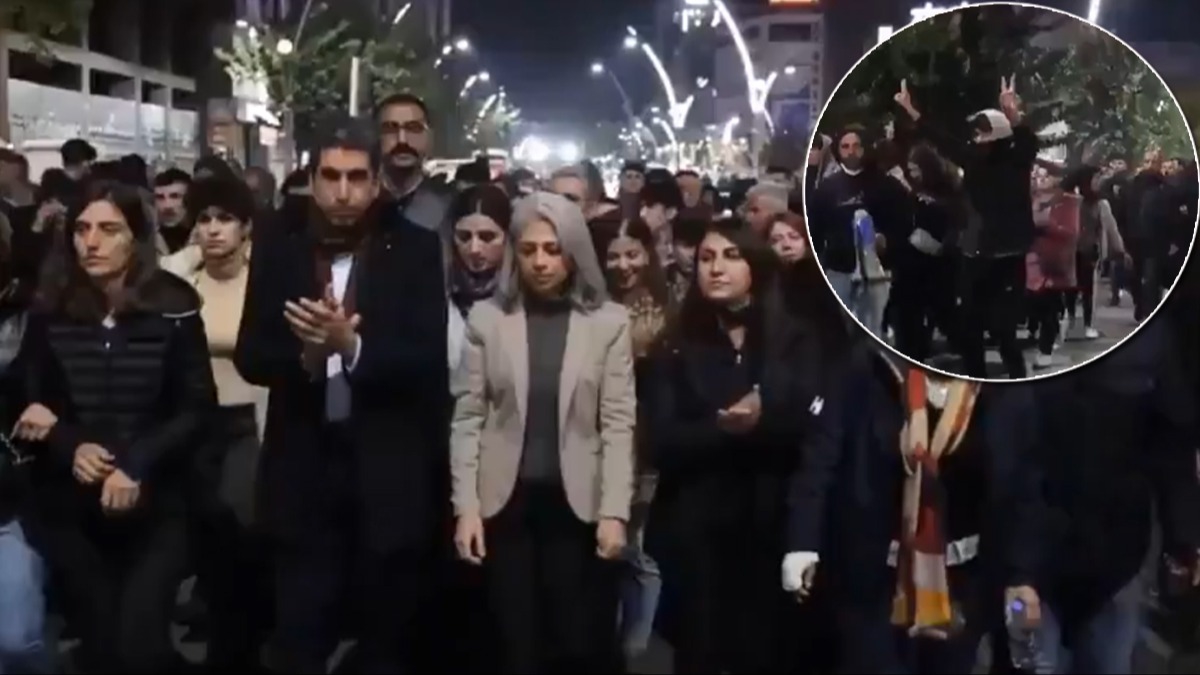 Ayrıca yürüyüşte en ön sırada DEM Partili vekillerin de olduğu görülürken yürüyüşte terör örgütü PKK'ya destek sloganları da atıldı.