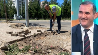 Bağlar Belediyesi, basın birimindeki 30 yıllık gazeteci Saffet Azbay'a da parke taşı döşettirmişti.
