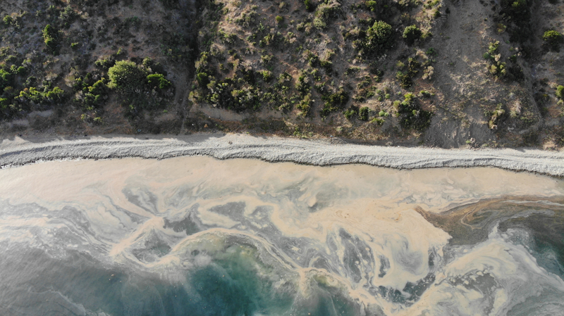 Vatandaşlardan Gökhan Baran da sahilin renginin yer yer turuncuya büründüğünü söyledi.