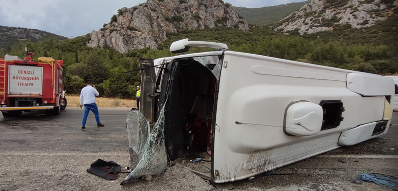 Acıpayam ilçesinden İzmir'deki düğüne gidenleri taşıyan Bayram Karagöz idaresindeki 20 KK 204 plakalı midibüs, Pamukkale ilçesi Cankurtaran mevkisinde devrildi.