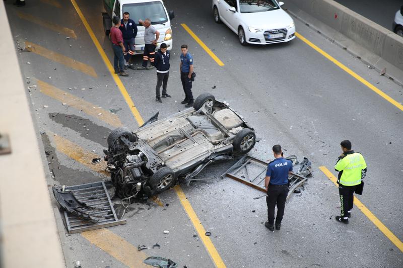 Sürücüsünün kimliği belirlenemeyen 09 ADZ 918 plakalı otomobil, Ankara Bulvarı'nda A.İ.M'nin kullandığı 20 FC 679 plakalı otomobille çarptıktan sonra bariyerleri aşarak, yaklaşık 10 metre yükseklikten Zeybek Alt Geçidi'ne düştü.