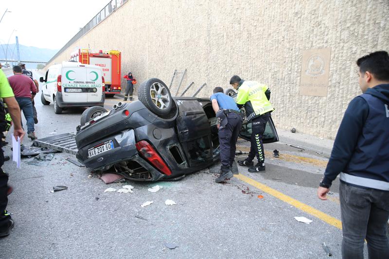 Devrilen otomobilde sıkışan yaralılar, itfaiye ekiplerinin çalışması sonucu kurtarılarak, ambulanslarla kentteki hastanelere kaldırıldı.