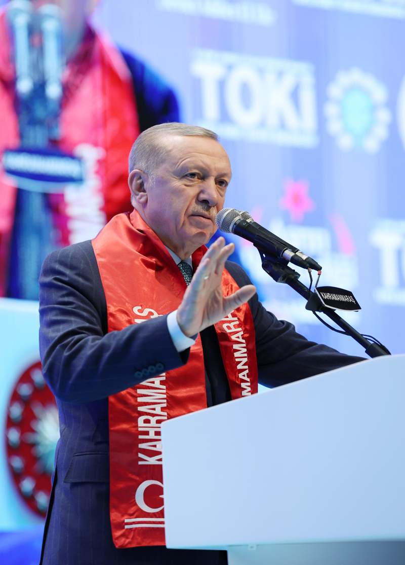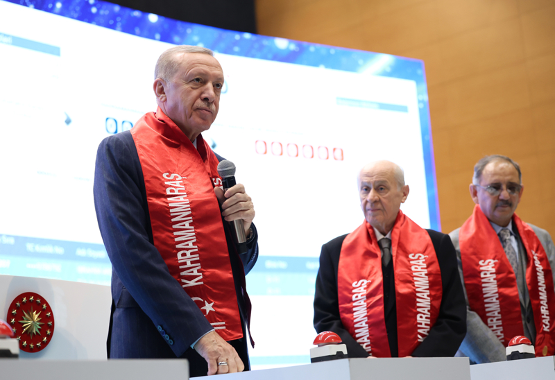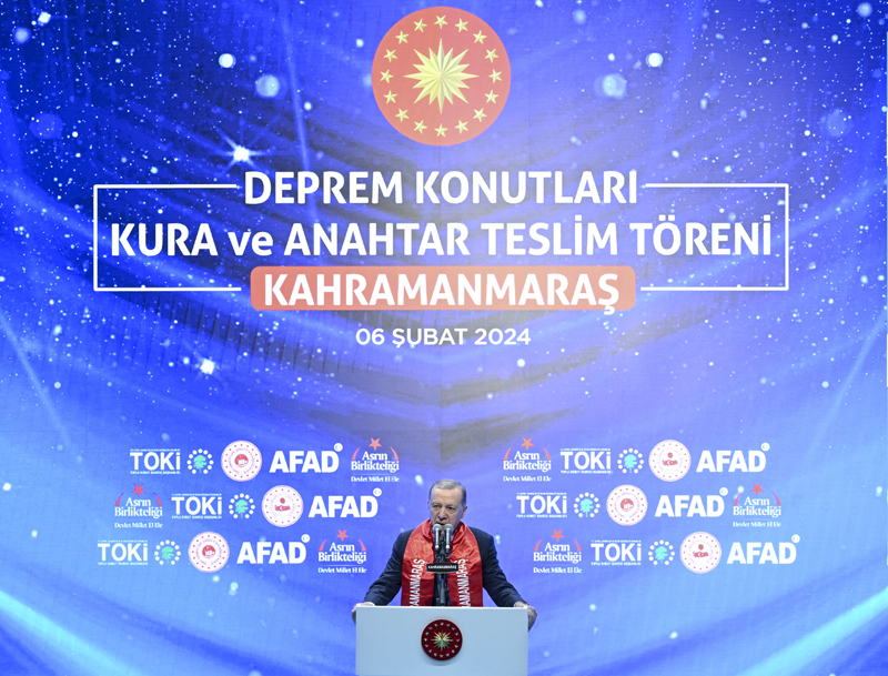 Başkan Erdoğan, deprem bölgesinde son 1 yılda yapılan çalışmaların anlatıldığı videonun da izletildiği törende, "Biz temeli atarken ne söz verdiysek onu yaptık. Muhalefet diyor ki 'bir yıl geçti ortada bir şey yok.' Kahramanmaraş burada, zahmet olmazsa bir turistik seyahat de buraya yapın. En son hak sahibi vatandaşımız güvenli yuvasına kavuşuncaya kadar durmadan, dinlenmeden çalışmaya devam edeceğiz." diye konuştu.