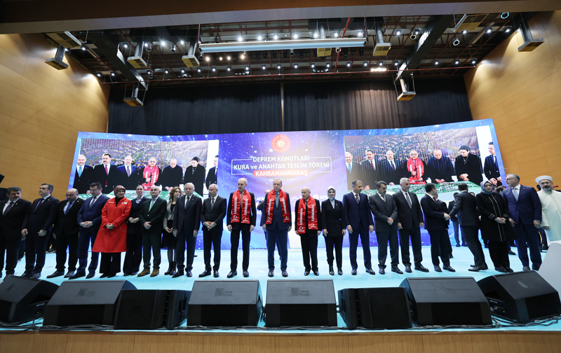 Başkan Erdoğan, Kahramanmaraş Sütçü İmam Üniversitesi Yunus Emre Kongre Merkezi'nde Deprem Konutları Kura ve Anahtar Teslim Töreni'ne katıldı.