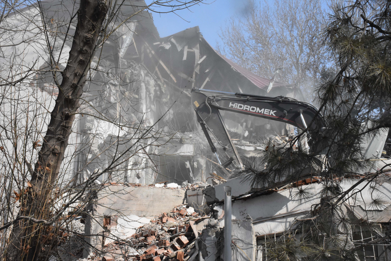 Daha sonra belediyeye ait iş makineleri binayı yıkmaya başladı. Çalışmaların yarın tamamlanması planlanıyor.