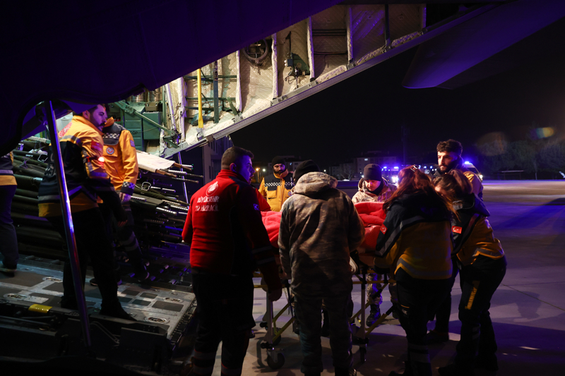 TSK'nın 222. filoya ait C-130 askeri kargo uçağıyla Adana'dan getirilen 30 yaralı depremzede, sağlık ekiplerince ambulanslara alındı.