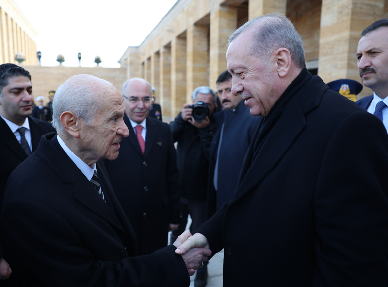 Cumhurbaşkanı Erdoğan, törenin ardından MHP Genel Başkanı Devlet Bahçeli ile selamlaştı.