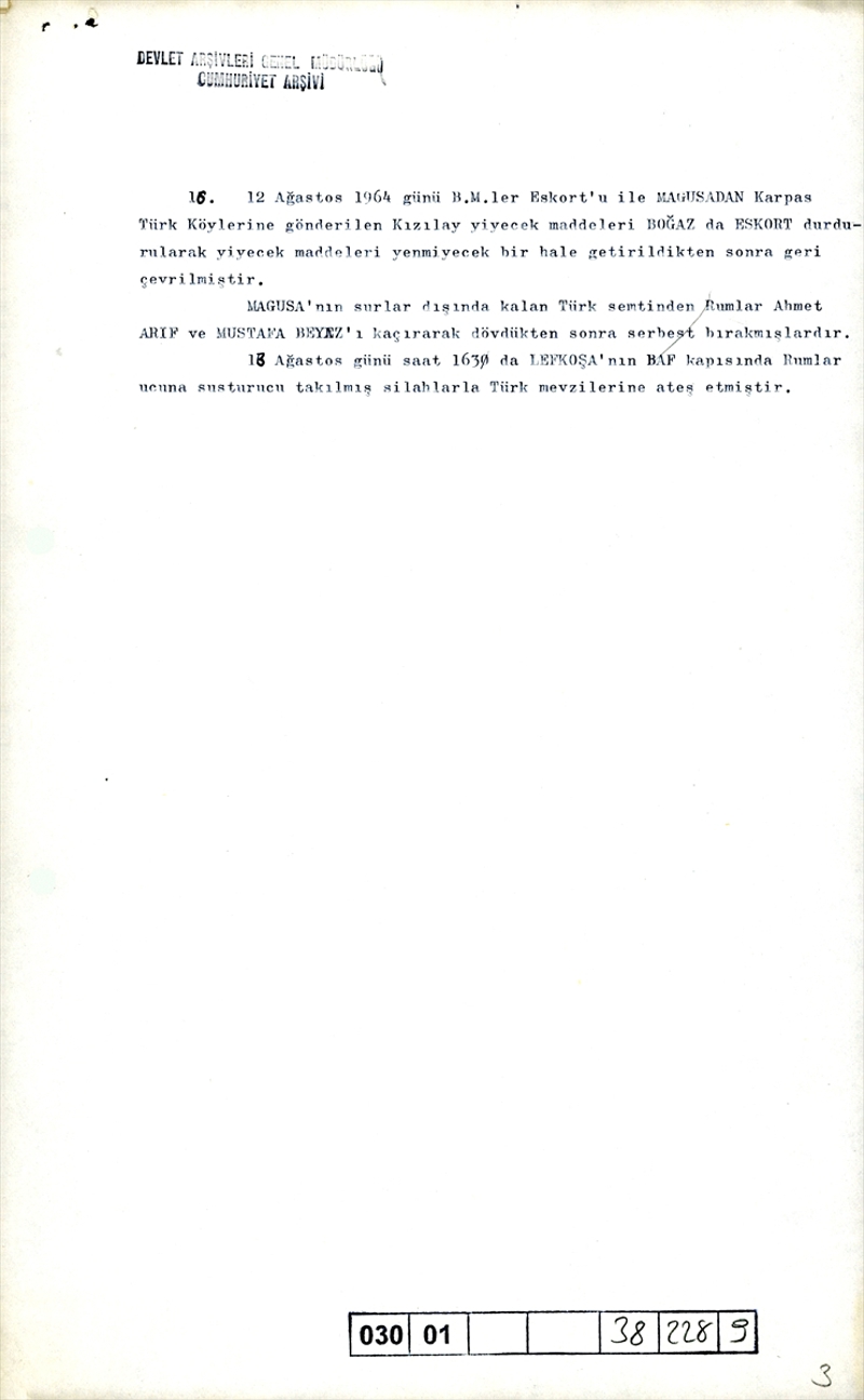 Rumların, Kıbrıs Türklerine uyguladığı mezalime ilişkin detaylar, 11 Ağustos 1964'te dönemin başbakanına iletilen bir raporda ayrıntılarıyla aktarılıyor.