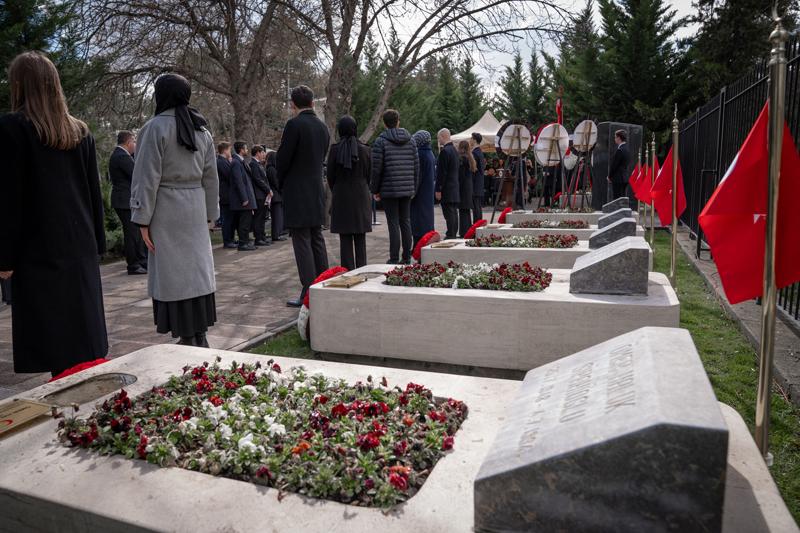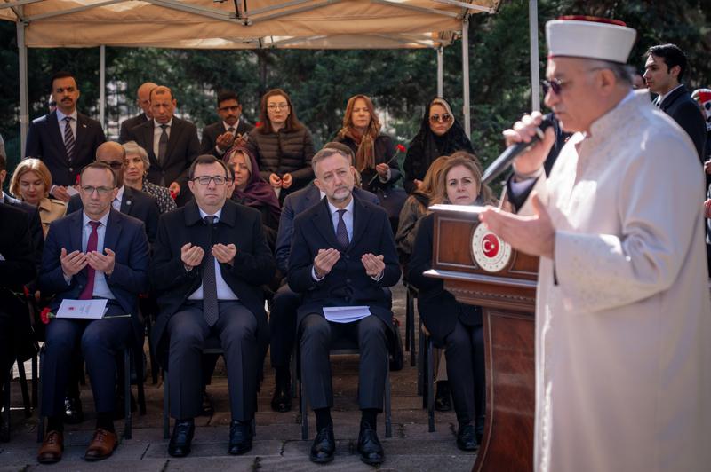 Cebeci Asri Mezarlığı'ndaki Dışişleri Şehitliği'nde düzenlenen anma törenine, şehit düşen diplomatların ailelerinin yanı sıra Dışişleri Bakan Yardımcısı Büyükelçi Zeki Levent Gümrükçü, Türk diplomatlar ve Türkiye'de görev yapan yabancı misyon temsilcileri katıldı.
