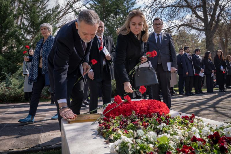 Törende, Cumhurbaşkanı Recep Tayyip Erdoğan, TBMM Başkanı Numan Kurtulmuş, Dışişleri Bakanı Hakan Fidan ve Dışişleri Mensupları Eşleri Dayanışma Derneği adına anıta çelenk bırakıldı.