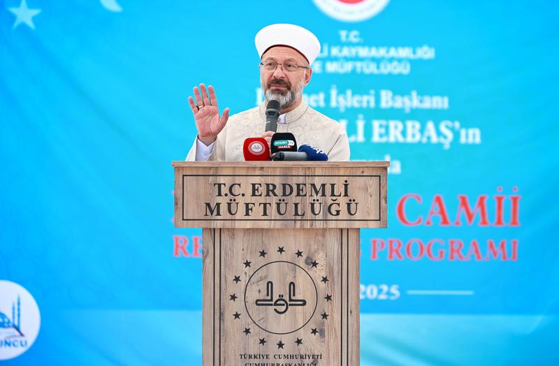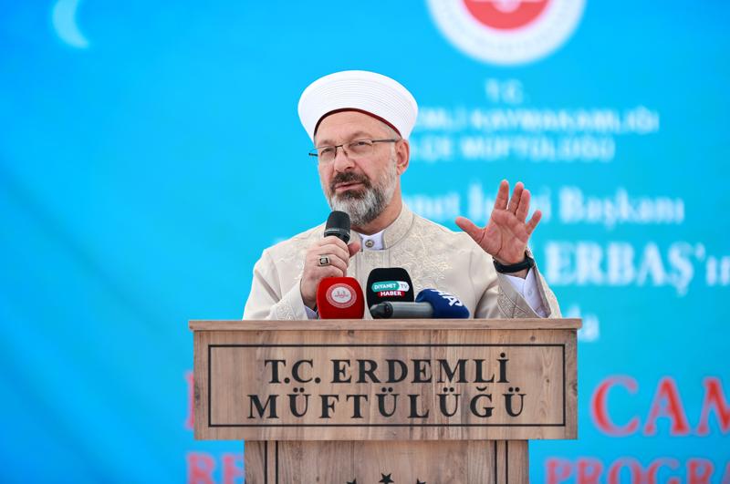 Erbaş, Erdemli ilçesindeki Koyuncu Camisi'nin açılış töreninde, camilerin aynı zamanda bir okul olduğunu söyledi.