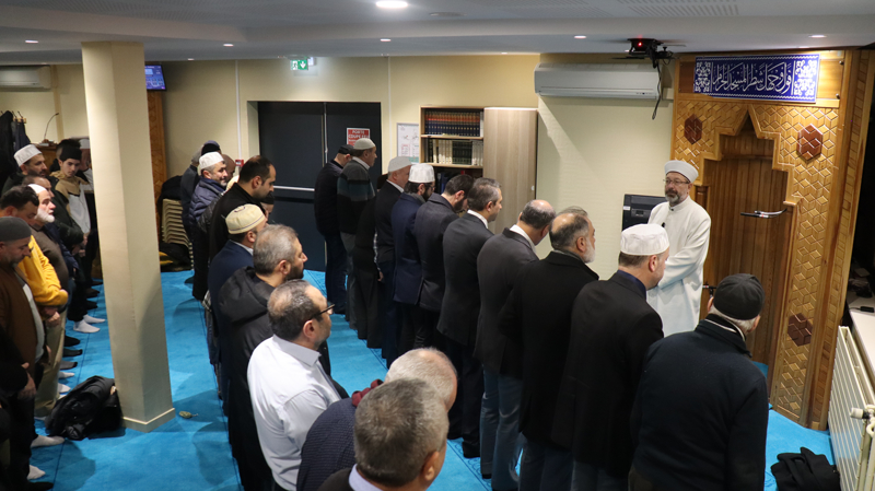 Diyanet İşleri Başkanlığından yapılan yazılı açıklamaya göre Strazburg'daki Yunus Emre Camisi'nde sabah namazını kıldıran ve Kur'an-ı Kerim okuyan Başkan Erbaş, tesbihatlar ve getirilen salavatların ardından cemaate hitap etti.