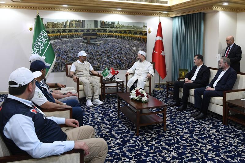 Erbaş, Din Hizmetleri Ataşelik binasında gerçekleşen görüşmede, Türkiye olarak hacılara uzun yıllardır sağlık hizmeti vermeye devam ettiklerini belirterek, "Mekke'de güçlendirilmiş poliklinik hizmetleri veren 1 sağlık merkezi, 13 sağlık ocağı, Medine'de ise 3 sağlık ocağımızla sağlık hizmeti sunmaktayız. Mekke ve Medine'de hacılarımıza değişik branşlarda toplam 275 sağlık personelimizle hizmet vermekteyiz." dedi.