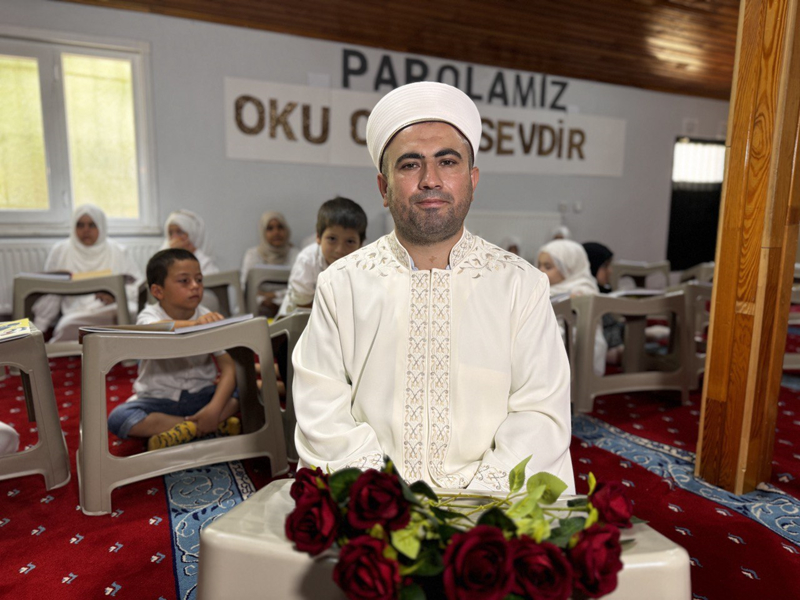 Çeşitli hediyeler ve ikramlarla karşılanan çocuklar, burada İmam Hatip Osman Korkmaz gözetiminde Kur'an-ı Kerim öğreniyor.