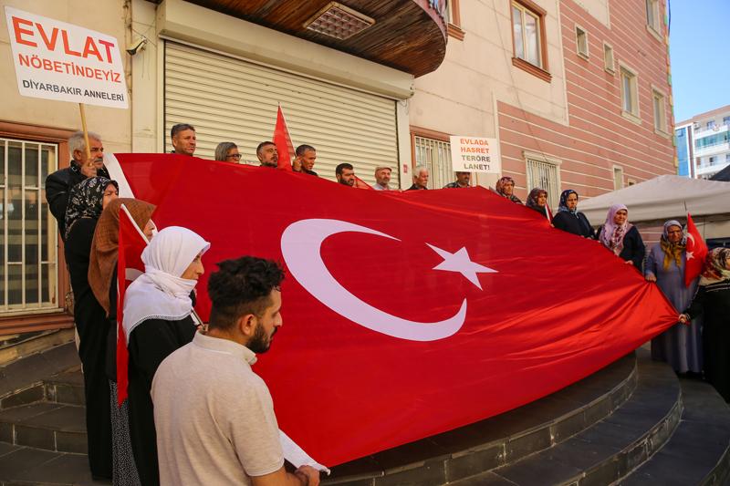 Terör örgütü PKK tarafından kaçırılan çocuklarına kavuşmak isteyen ailelerin, 3 Eylül 2019'da HDP il binası önünde başlattığı oturma eylemi, 1879'uncu gününde sürüyor.