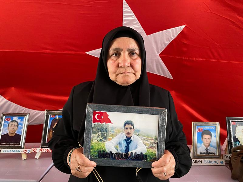 Annelerden Bedriye Uslu, 14 yıl önce kandırılarak dağa götürülen oğlu Mahmut için eylem yaptığını belirtti.