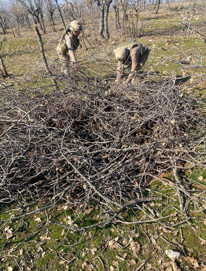 Operasyonun ilk gününde, Diyarbakır'ın Lice ilçesi Arıklı Mahallesi kırsalında tespit edilen sığınakta, havan mühimmatı ve 144 kilogram toz esrar ele geçirildi.
