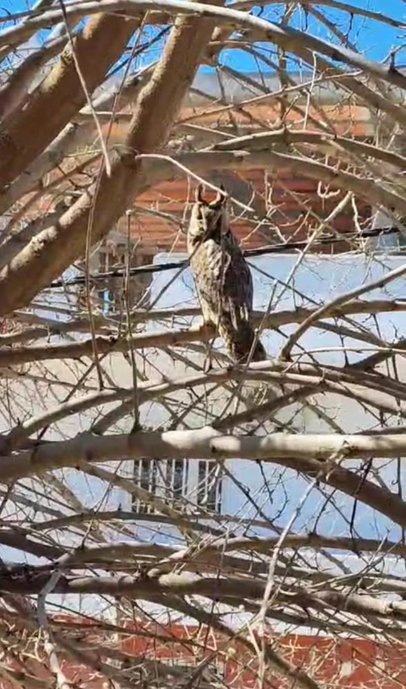 Köylüler, ilk defa bu türden bir baykuş gördüklerini belirterek, o anı cep telefonu kamerasıyla kaydetti. Baykuş, bir süre sonra uçarak gözden kayboldu.