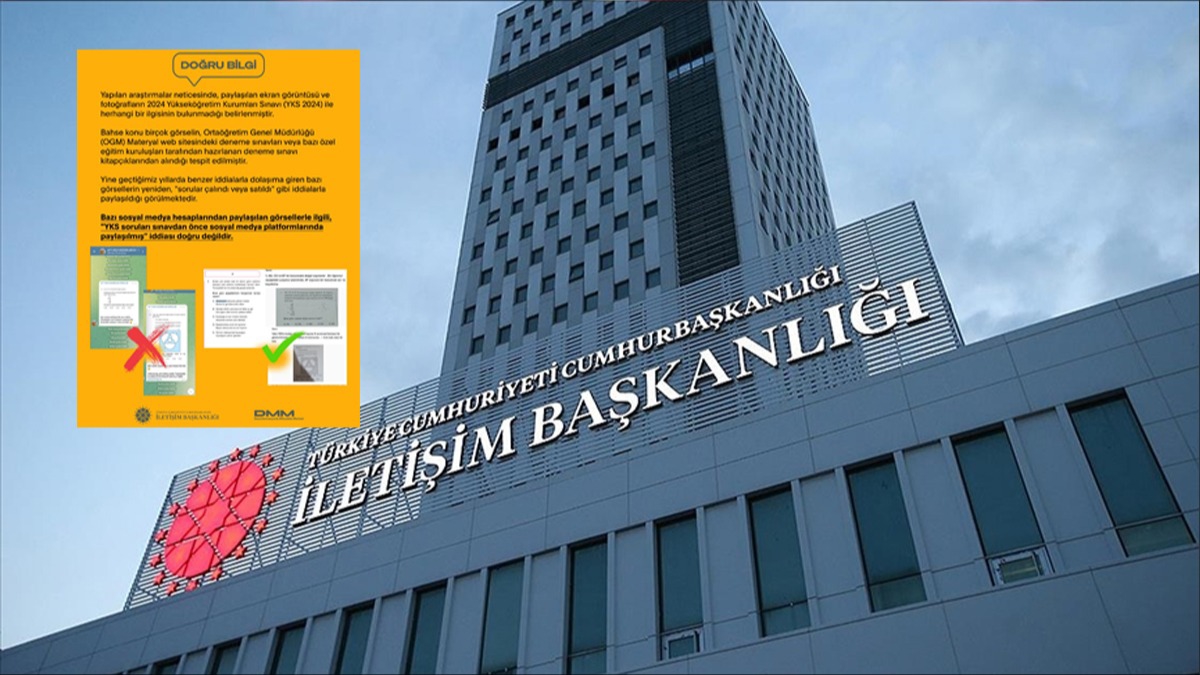 "Yapılan araştırmalar neticesinde, paylaşılan ekran görüntüsü ve fotoğrafların 2024 YKS ile herhangi bir ilgisinin bulunmadığı belirlenmiştir. Bahse konu birçok görselin, Ortaöğretim Genel Müdürlüğü (OGM) 'materyal web' sitesindeki deneme sınavları veya bazı özel eğitim kuruluşları tarafından hazırlanan deneme sınavı kitapçıklarından alındığı tespit edilmiştir. Yine geçtiğimiz yıllarda benzer iddialarla dolaşıma giren bazı görsellerin yeniden "sorular çalındı veya satıldı" gibi iddialarla paylaşıldığı görülmektedir."