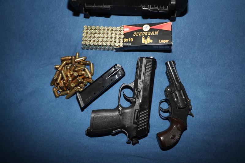 Operasyonda 2 ruhsatsız tabanca, çok sayıda fişek ve delil niteliğinde belgeler ele geçirildi.
