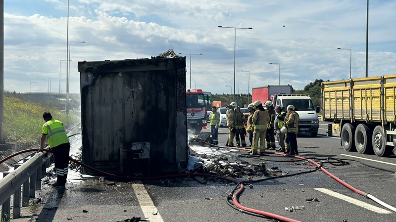 Kuzey Marmara Otoyolu, Uskumruköy Kavşağı mevkiinde, 06 BZA 227 plakalı tırın sürücüsü Fatih Güngör, seyir halindeyken aracın dorsesinden duman yükseldiğini gördü.