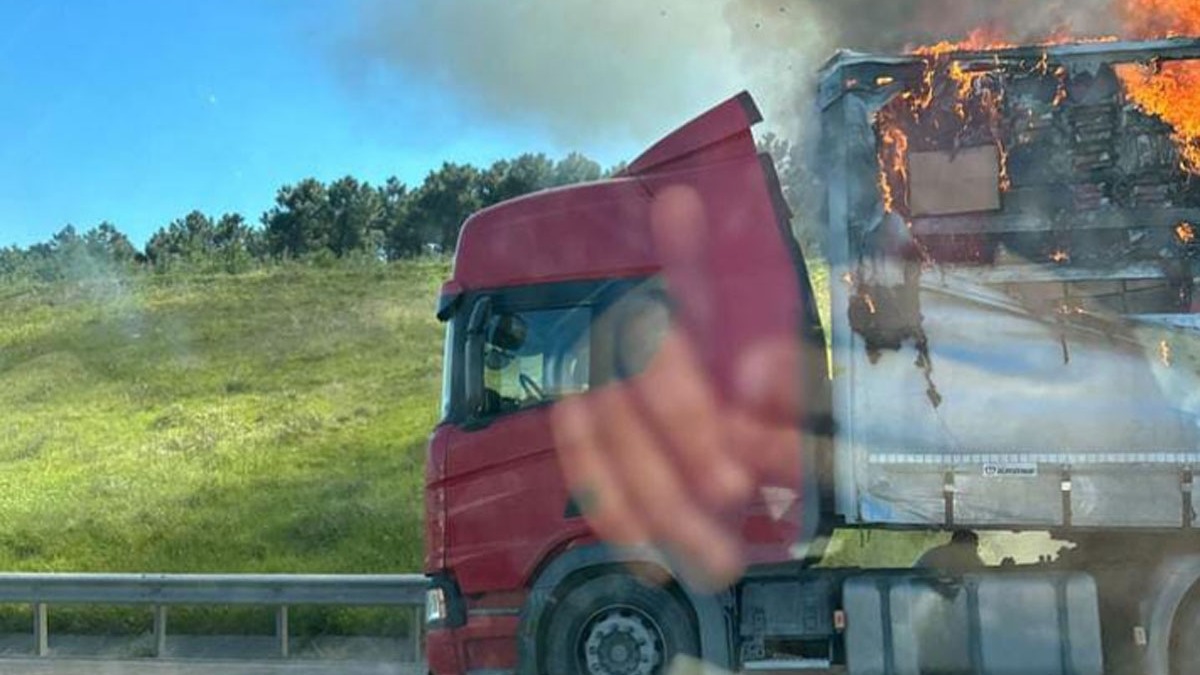 Öte yandan, tırın dorsesinin yanması çevredekilerin cep telefonlarıyla kaydedildi.