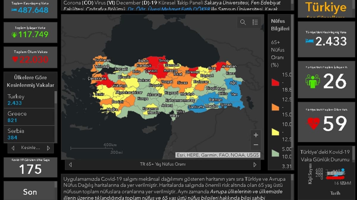 Açıklamada, hem web hem de mobil uygulama olarak tasarlanan panelle koronavirüs salgınının mekansal dağılımını haritalandırdıklarının bilgisini paylaşan Döker'in şu ifadelerine yer verildi: