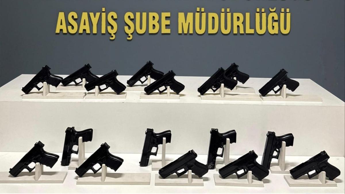 Araçta yapılan aramada 17 ruhsatsız tabanca ele geçirildi.