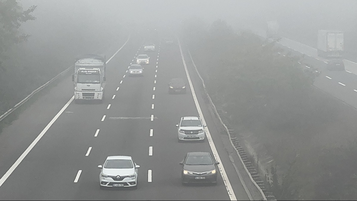 Düzce'de sabah saatlerinden itibaren etkili olan yoğun sis, Anadolu Otoyolu'nda görüş mesafesini önemli ölçüde azalttı. Sisin en yoğun olduğu güzergahlarda görüş mesafesi düşerken, sürücüler zorunlu olarak yavaş ilerledi. Trafik ekipleri ise sürücüleri dikkatli olmaları ve hızlarını düşürmeleri konusunda uyardı.