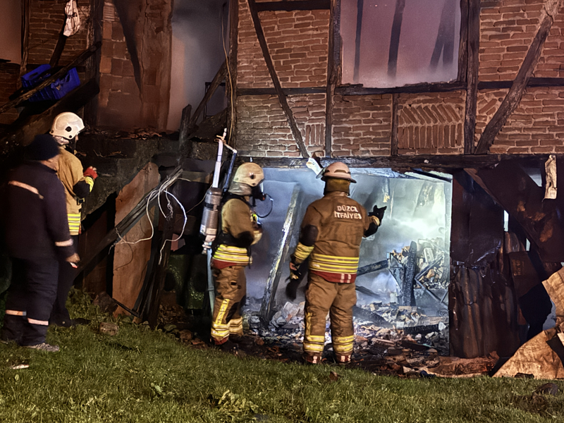 Ekiplerin müdahalesiyle söndürülen yangında ev kullanılamaz hale geldi, binanın alt kısmında bulunan "patpat" diye tabir edilen tarım aracında da hasar oluştu.
