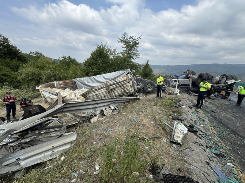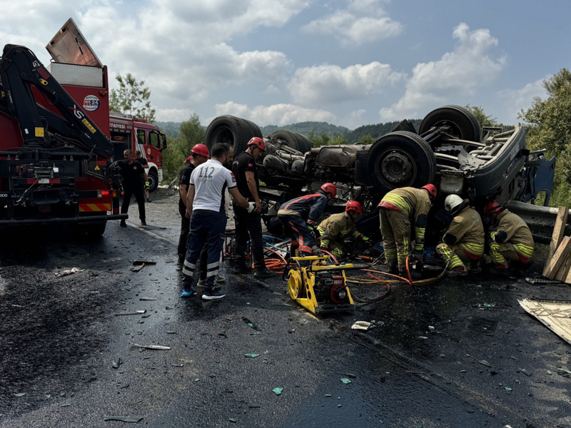 Tır, bu sırada Ankara istikametine giden ve sürücüsünün ismi öğrenilemeyen 14 JBZ 03 plakalı otomobille çarpıştı.