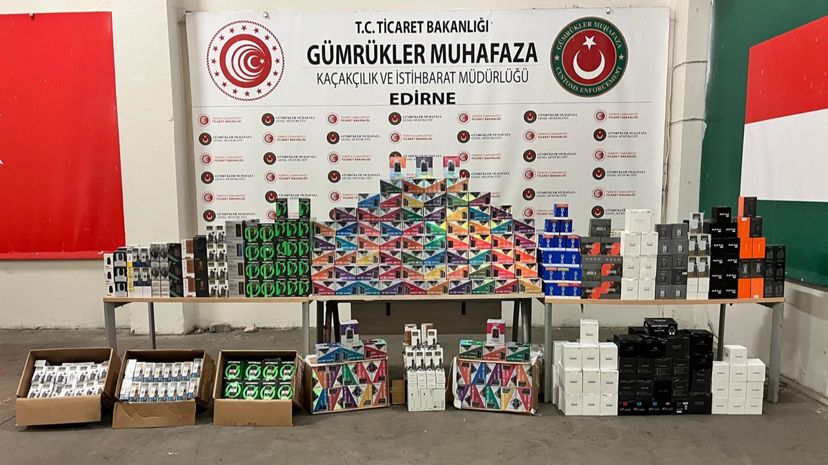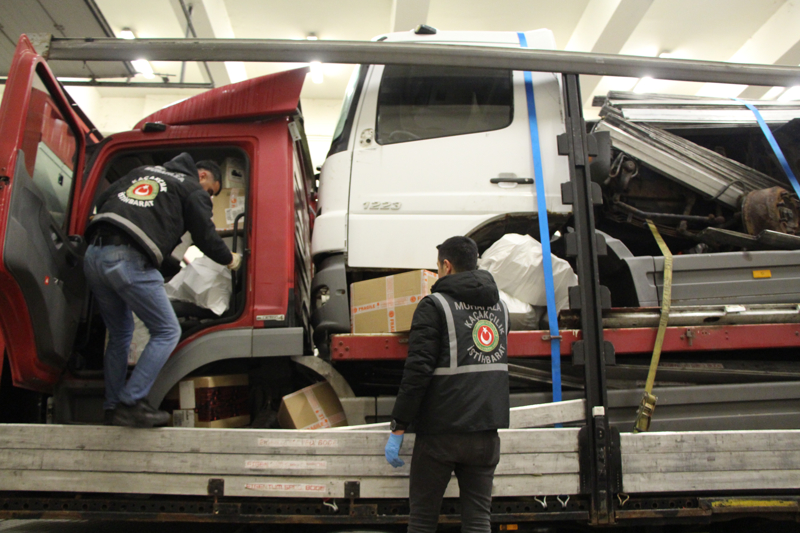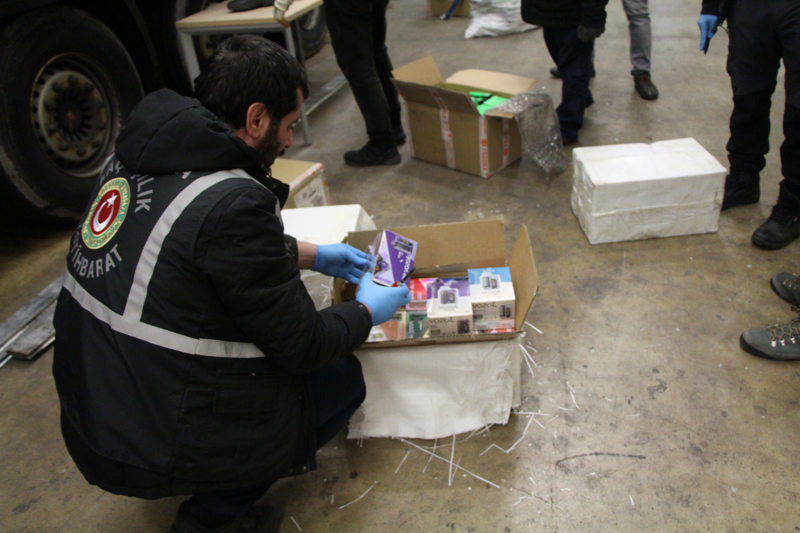 Tırların birinde yapılan aramda 16 bin 500 kaçak elektronik sigara ele geçirildi.