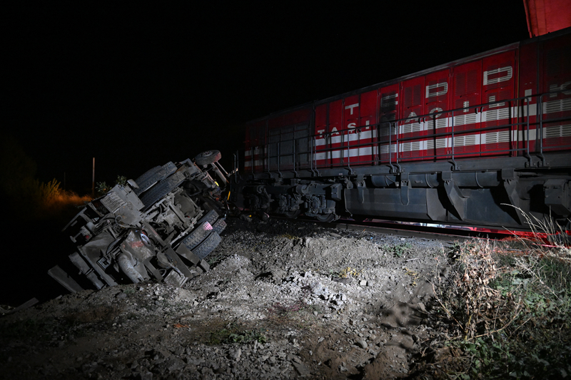 İstanbul - Sofya seferini yapan tren, Sarıbayır mevkisindeki raylarda bırakılan 06 GF 1026 plakalı beton pompası aracına çarparak durdu.